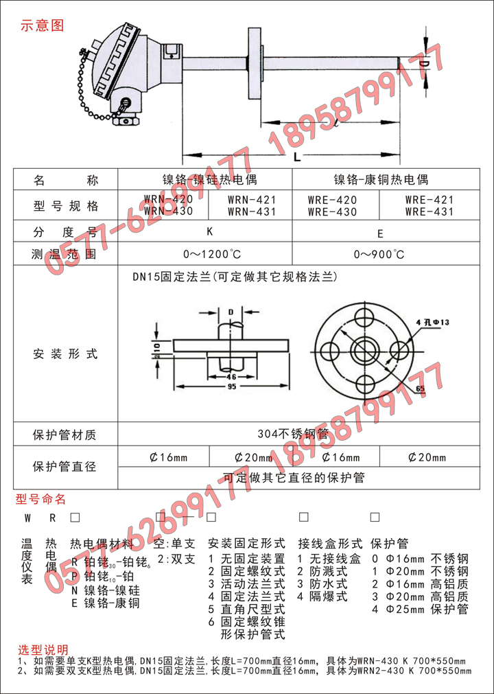 WRN-421,WRN-431,装配式热电偶,K型热电偶